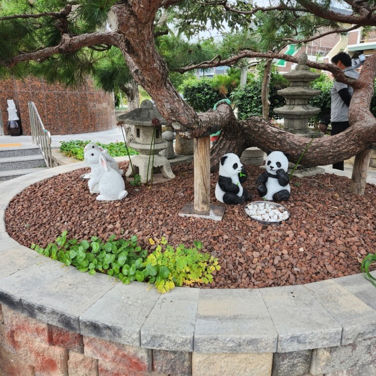 조각상으로 토끼와 팬더가 있는 것이